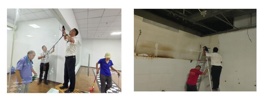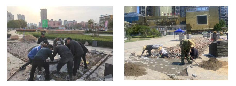 2024年4月,中泰商管團隊決定對廣場上影響活動開展、破損嚴(yán)重的地面進行整修;對漏水的四個水池拆除;對廣場噴泉修復(fù),整改面積約700平方米。這些維修改造工作沒有通過外部工程隊伍施工,都是潘鴻生總經(jīng)理帶領(lǐng)全體同志完成。他們冒酷暑戰(zhàn)高溫,清淤泥焊管道,鏟地面鋪電纜,細研究定方案,全天候的在廣場上,進行一袋袋水泥的傾倒、一鍬鍬黃沙的攪拌、一塊塊地磚的鋪裝、一節(jié)節(jié)管道的修復(fù),歷時3個月全面完工,中泰廣場恢復(fù)往昔的靈動與活力,公司也節(jié)省了大筆費用支出。