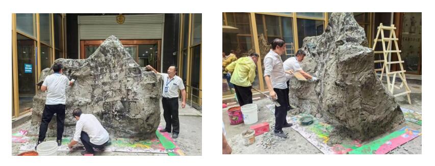 2024年6月,中泰商管團隊在雕塑老師的指導(dǎo)下,公司自己買物料、自己焊接假山骨架,配合老師打磨修改,一座形象逼真的假山很快就屹立在商場3號門外,為公司節(jié)約了開支,又增添了文化氛圍。