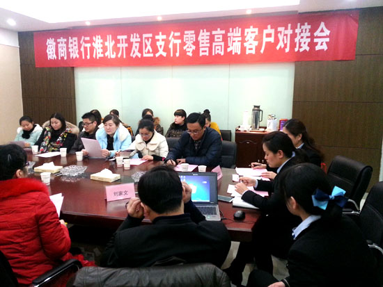 徽商銀行淮北開發(fā)區(qū)支行葉廣霞副行長主持會議,首先對該支行的情況進行了簡要介紹,對鼎盛國際各部門的配合與支持表示感謝,并希望在2015年雙方的合作能更進一步。會議還就雙方合作中存在的問題及下一步業(yè)務(wù)拓展進行了熱烈討論,并達成一致意見。