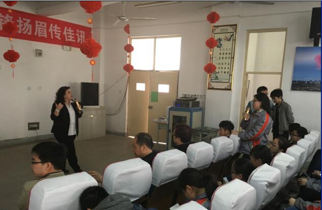 在參訪(fǎng)過(guò)程中,Kirsten一行走進(jìn)天一高中部高一(3)班與初中部初一的3個(gè)班級(jí)與同學(xué)們進(jìn)行簡(jiǎn)短的互動(dòng)交流。隨后,Kirsten在多媒體教室向同學(xué)們推介了查塔姆肯特市的地理區(qū)位以及教育環(huán)境,還重點(diǎn)向同學(xué)們介紹了她們市教育局的教學(xué)理念與學(xué)習(xí)氛圍。最后,Kirsten向在座的學(xué)生們發(fā)出誠(chéng)摯的邀請(qǐng)。同時(shí),學(xué)生們也就自己感興趣的問(wèn)題向Kirsten一一詢(xún)問(wèn)。