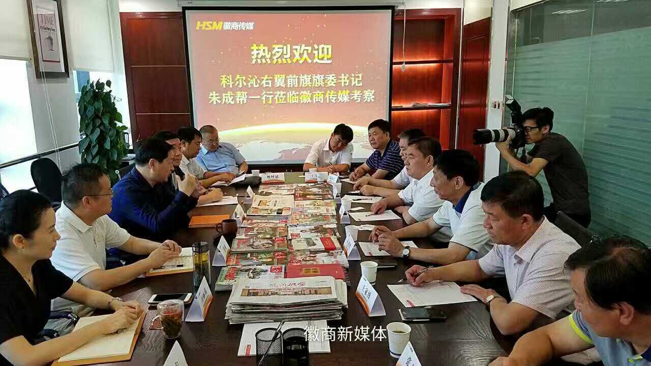 2016年9月12日,安徽日報報業(yè)集團《徽商》雜志社總編輯、安徽徽商傳媒有限公司董事長、總經理韓新東在安徽合肥隆重接待內蒙古科爾沁右翼前旗旗委書記朱成幫一行,安徽職業(yè)經理人協(xié)會執(zhí)行院長、安徽省經理人聯(lián)合會會長張耀峰、天象集團董事長孔令發(fā)陪同接待。