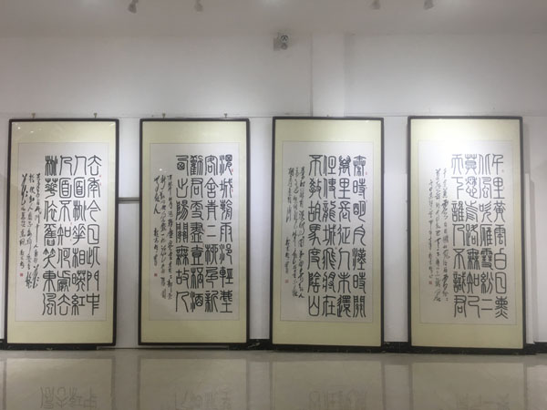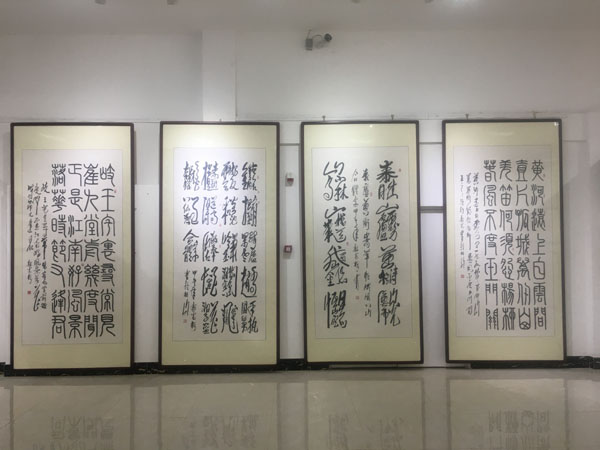 此次展覽由中國(guó)毛體書法家協(xié)會(huì)、中國(guó)毛體書法家協(xié)會(huì)安徽分會(huì)、天象集團(tuán)有限責(zé)任公司聯(lián)合主辦,共展出了郭光梅183幅精選作品,包含了毛體、隸書等8種字體,展覽將持續(xù)到4月20日。