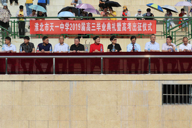 6月4日,淮北市天一中學(xué)2019屆高三畢業(yè)典禮暨高考出征儀式在天一中學(xué)體育場舉行?;幢币恢行iL、天一中學(xué)董事長馬穎女士、天象集團(tuán)董事長、天一中學(xué)副董事長孔令發(fā)先生、天一中學(xué)董事、天一初中校長郭光梅女士,以及天一中學(xué)校長林祥華先生、黨支部書記杜宏偉先生、常務(wù)副校長李平先生、副校長王小虎先生、天一初中常務(wù)副校長陳一中先生、副校長胡磊先生等出席了這次典禮。全體畢業(yè)生在國旗和驕陽下喊出青春的誓言,校領(lǐng)導(dǎo)、教師還有家長匯集于此,共同見證孩子們激昂又榮耀的一刻。
